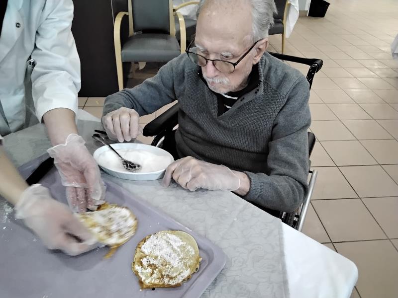 Moment fort de la semaine passée, une après-midi autour de la tradition des crêpes faites maison pour célébrer comme il se doit la chandeleur. Merci aux résidents de la "table au sucre" qui se sont démenés pour pouvoir servir pas moins de 140 crêpes garnies à l'ensemble des résidents et une 40 aine aux salariés. L'odeur et le goût ont fait des heureux !