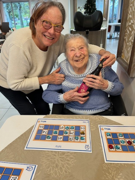 Ce samedi après-midi, la salle de restaurant s'est transformée en véritable salle de loto pour un moment festif et solidaire au profit du Téléthon. Résidents, familles ont partagé un moment convivial tout en soutenant une cause qui tient à cœur les résidents.